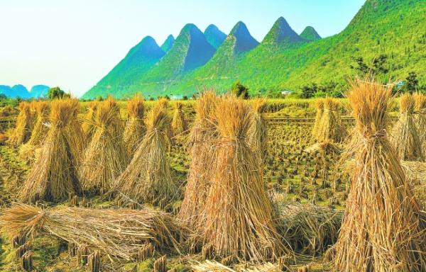 在万峰林,你可以乘坐观光车沿着半山腰的道路,俯瞰整个景区的壮丽景色。也可以租一辆电动车骑行或者步行,穿梭于峰林和田园之间。连绵起伏的山峦与金黄的田野相映成趣,构成了一幅绝美的山水田园画卷。